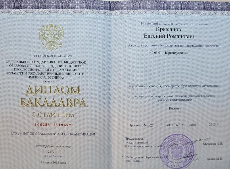 АДВОКАТ по СЕМЕЙНЫМ и НАСЛЕДСТВЕННЫМ делам. Веду телеграм канал https://t.me/kryukov_group62. Основатель компании «КРЮКОВ ГРУПП». Я являюсь специалистом в области семейного и наследственного права, а также занимаюсь сопровождением сделок с недвижимостью. Всегда стремлюсь найти для клиента наилучшее решение. Мой опыт судебной практики составляет более 16 лет. Буду рад видеть вас среди своих клиентов.
