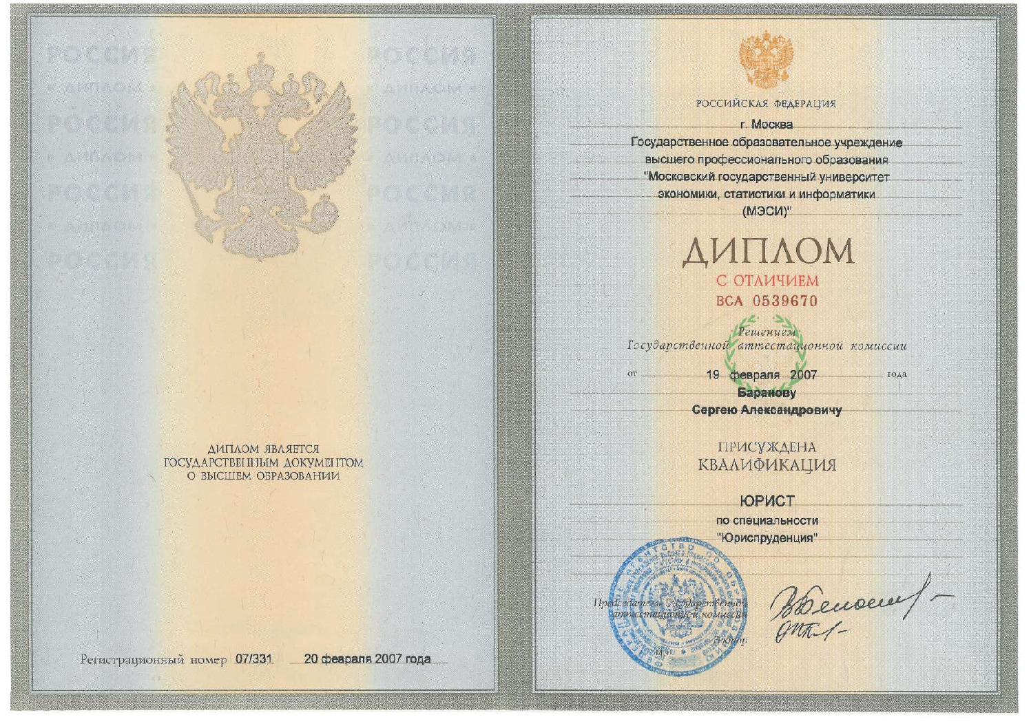 Московский государственный университет экономики, статистики и информатики — Юриспруденция — Москва