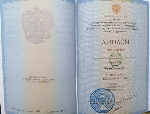 Ваш юрист Гудов Юрий Павлович! Всегда все разъясню, во всем всегда помогу и поддержу в трудной жизненной ситуации! Первичная консультация бесплатная для Вас! Всегда на связи! Большой опыт положительной и подтвержденной юридической и судебной практики в судах более 20 лет! Работаю по специальности со второго курса юридического вуза. Фото диплома о высшем юридическом образовании прилагаю. Профессионально и качественно оказываю юридические услуги в области гражданского, жилищного, наследственного, семейного, административного, земельного и других отраслей права!