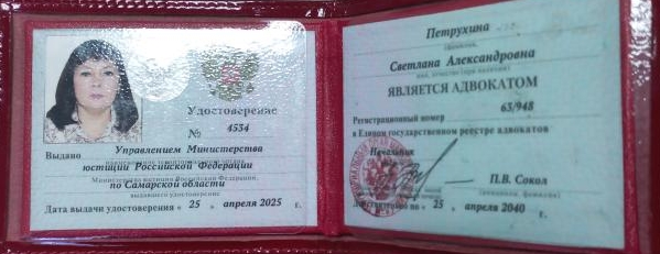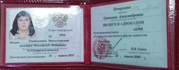 Действующий адвокат Палаты адвокатов Самарской области.