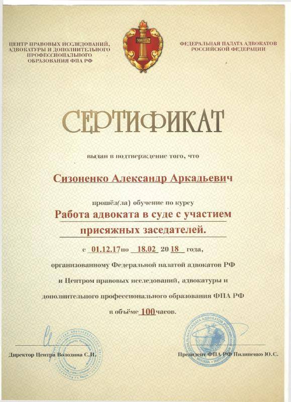 Выражаю искреннюю благодарность адвокату Сизоненко Александру Аркадьевичу за профессиональную и качественную работу в рамках моего дела... Читать далее