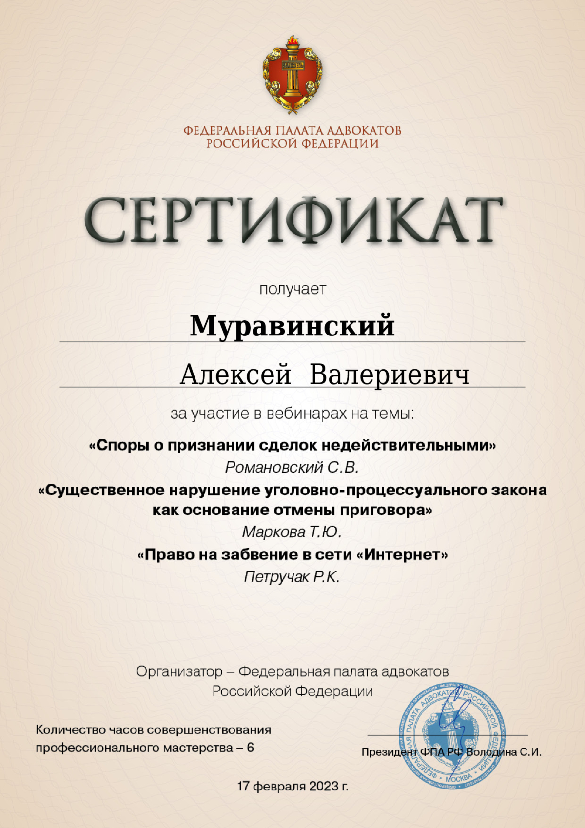 Адвокат с более чем 17-летним опытом работы в качестве частно-практикующего юриста и адвоката. Специализируюсь на всех отраслях права: уголовное, арбитражное, гражданское и административное. Это помогает мне поддерживать свежий взгляд на дела и избегать рутины. Работаю индивидуально, без привлечения сторонних представителей, и полностью несу ответственность за каждое дело.