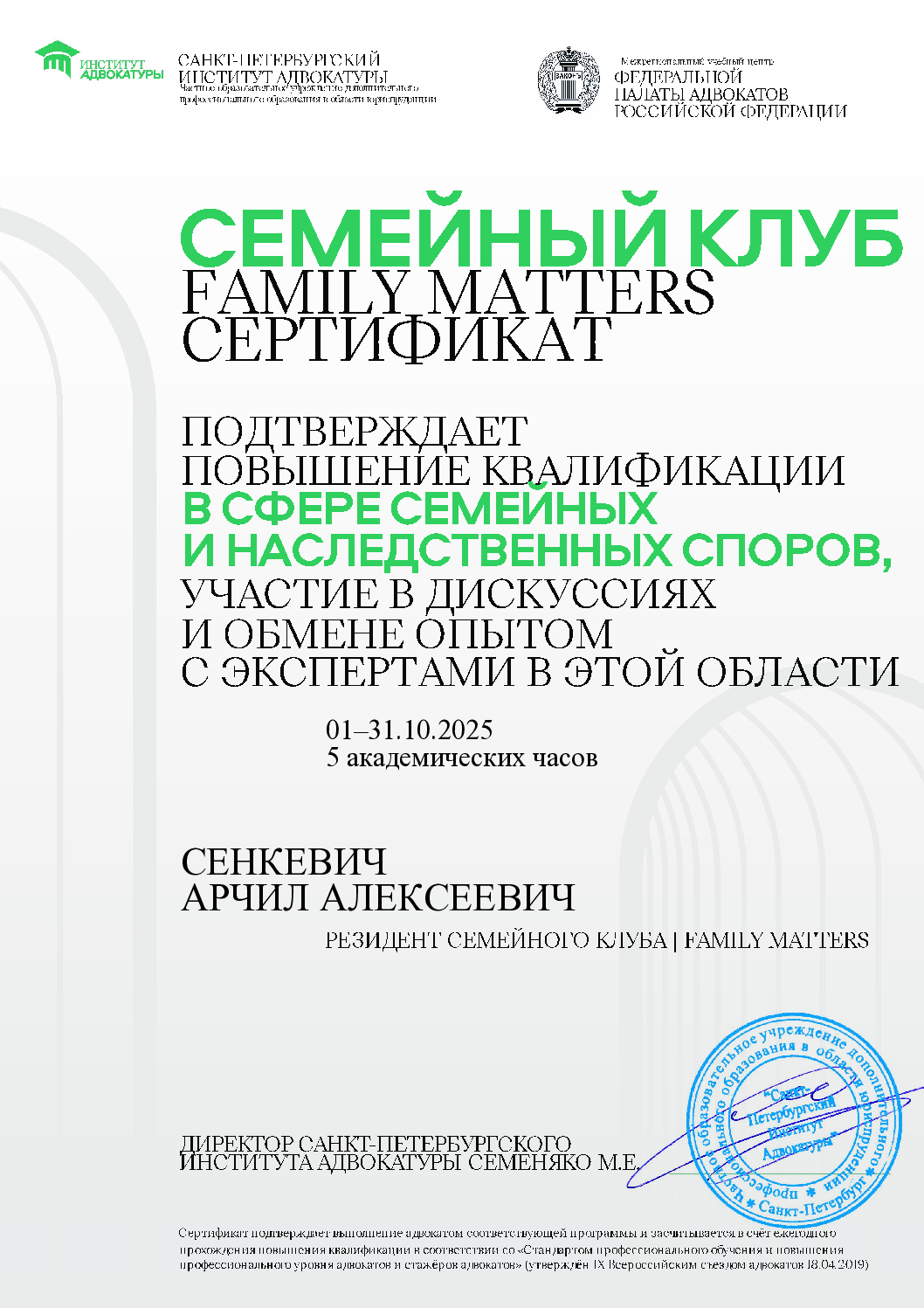 Имею поощрения Федеральной палаты адвокатов и Адвокатской палаты города Санкт-Петербурга