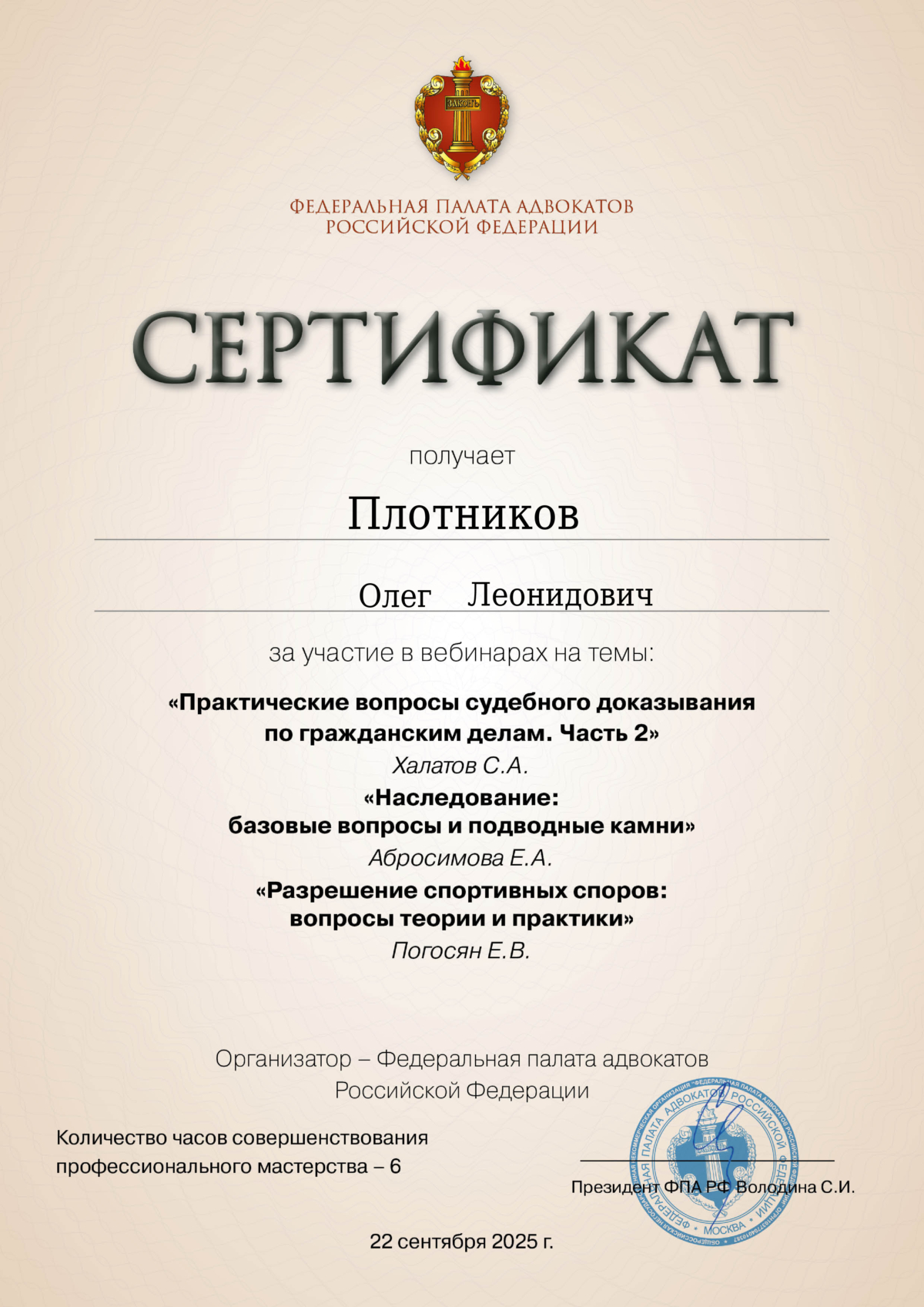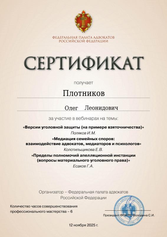 Меня зовут Олег Леонидович Плотников, я адвокат, являюсь членом Адвокатской палаты Санкт-Петербурга.