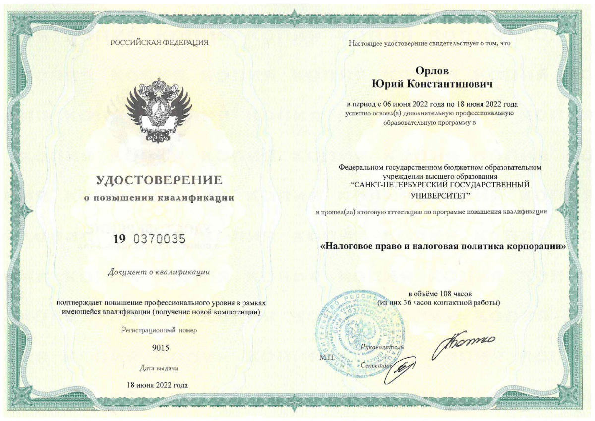 Постоянно совершенствую свои знания и навыки, являюсь аккредитованным налоговым консультантом, училась в ведущих ВУЗах страны (специалитет и аспирантура) в общей сложности 11 лет.