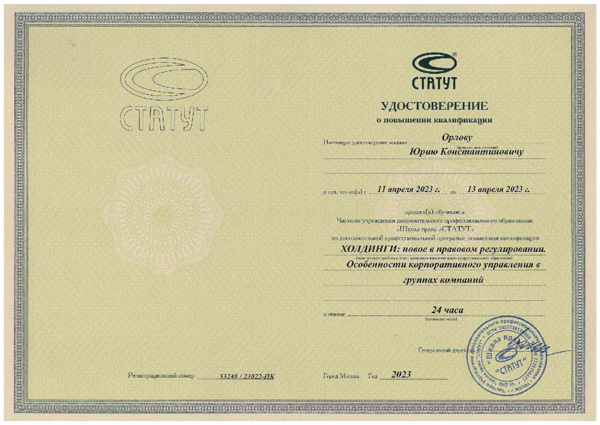 Постоянно повышаю квалификацию, отслеживаю изменения в законодательстве с целью оказания высокого уровня услуг. Ответственно отношусь к делу, выявляю все возможные риски для вас. Обратившись ко мне Вы получите квалифицированную и юридическую помощь, которая обезопасит вашу деятельность и риски, связанные с вами.