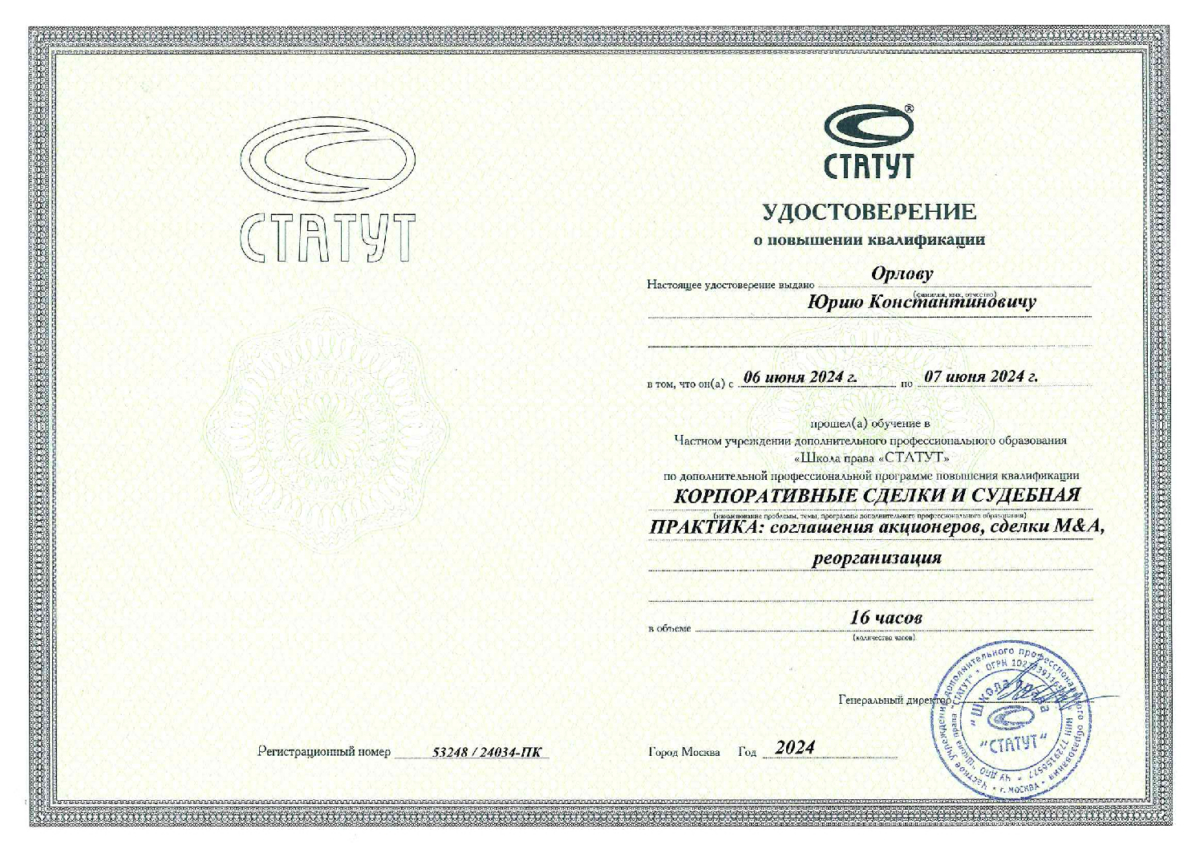 Продолжаю повышать свои знания и навыки на многочисленных курсах. Мои практические навыки: разрешение дел различной сложности, защита интересов в арбитражном суде и судах общей юрисдикции, разработка любого документа. Клиентам возвращено более 20 миллионов рублей.
