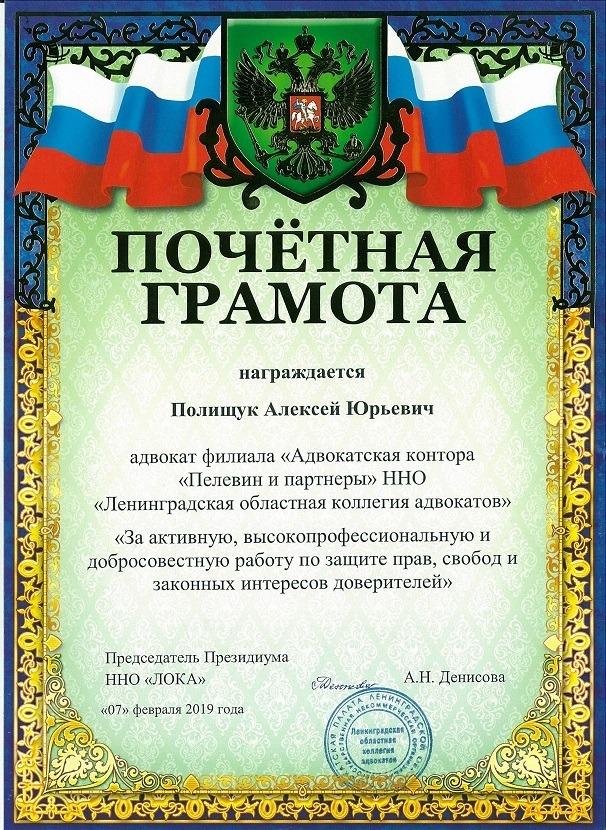 Адвокат Ленинградской областной палаты адвокатов, реестровый № 47/2912, удостоверение №3190. Большой стаж в правоохранительных органах, знание гражданского, административного и уголовного законодательства РФ, направленность на получение положительного результата!