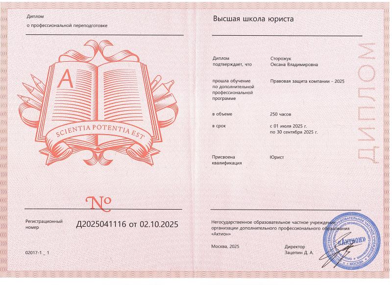 Я оказываю квалифицированную правовую помощь и работаю на благо своих клиентов. Моя цель — защищать их права и интересы, добиваясь справедливого разрешения конфликтов в соответствии с законом. В своей работе я подготавливаю юридические документы, представляю клиентов в суде, веду переговоры и выступаю посредником между сторонами спора. Кроме того, помогаю с составлением и анализом договоров, провожу юридическую экспертизу и сопровождаю сделки.