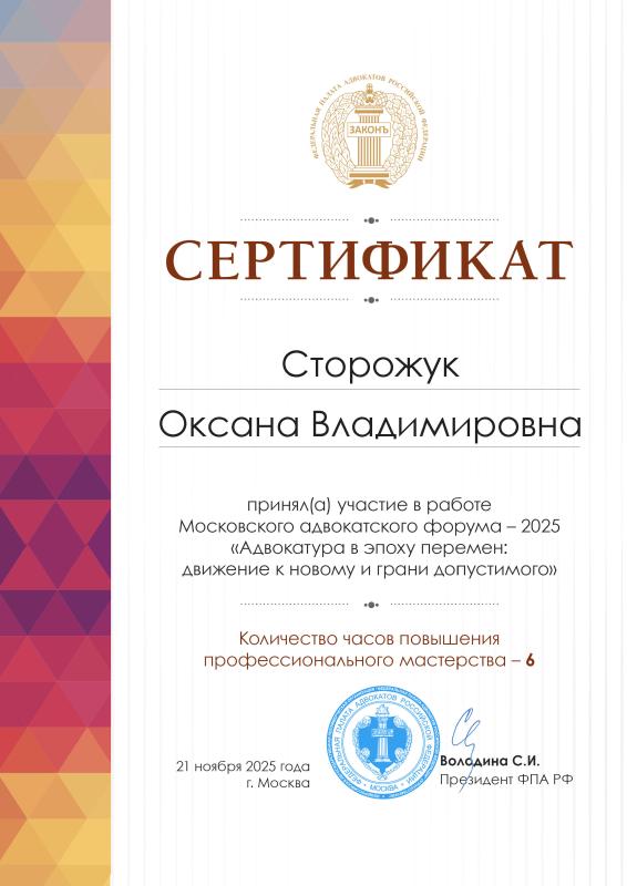 Здравствуйте! У меня большой опыт работы в различных областях права, включая гражданское, уголовное, административное, семейное и земельное. Я занимаюсь полным сопровождением финансово-хозяйственной деятельности юридических лиц и индивидуальных предпринимателей, а также оказываю правовую помощь участникам СВО. Мой опыт охватывает широкий спектр дел: от административных до уголовных, включая гражданские и арбитражные процессы. Мои доверители всегда могут быть уверены в моей порядочности и стремлении к успешному разрешению их дела в кратчайшие сроки.