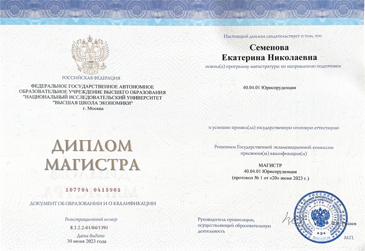 НИУ ВШЭ — Национальный исследовательский университет «Высшая школа экономики» — Правовая охрана интеллектуальной собственности — Москва Магистр