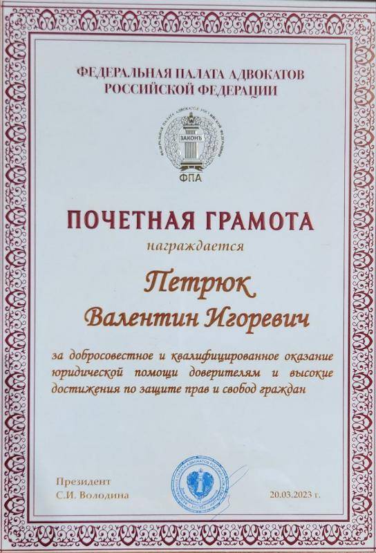 Список судебных дел в карточке адвоката может быть не полным и зависит от того, указан ли адвокат Петрюк Валентин Игоревич в деле или нет