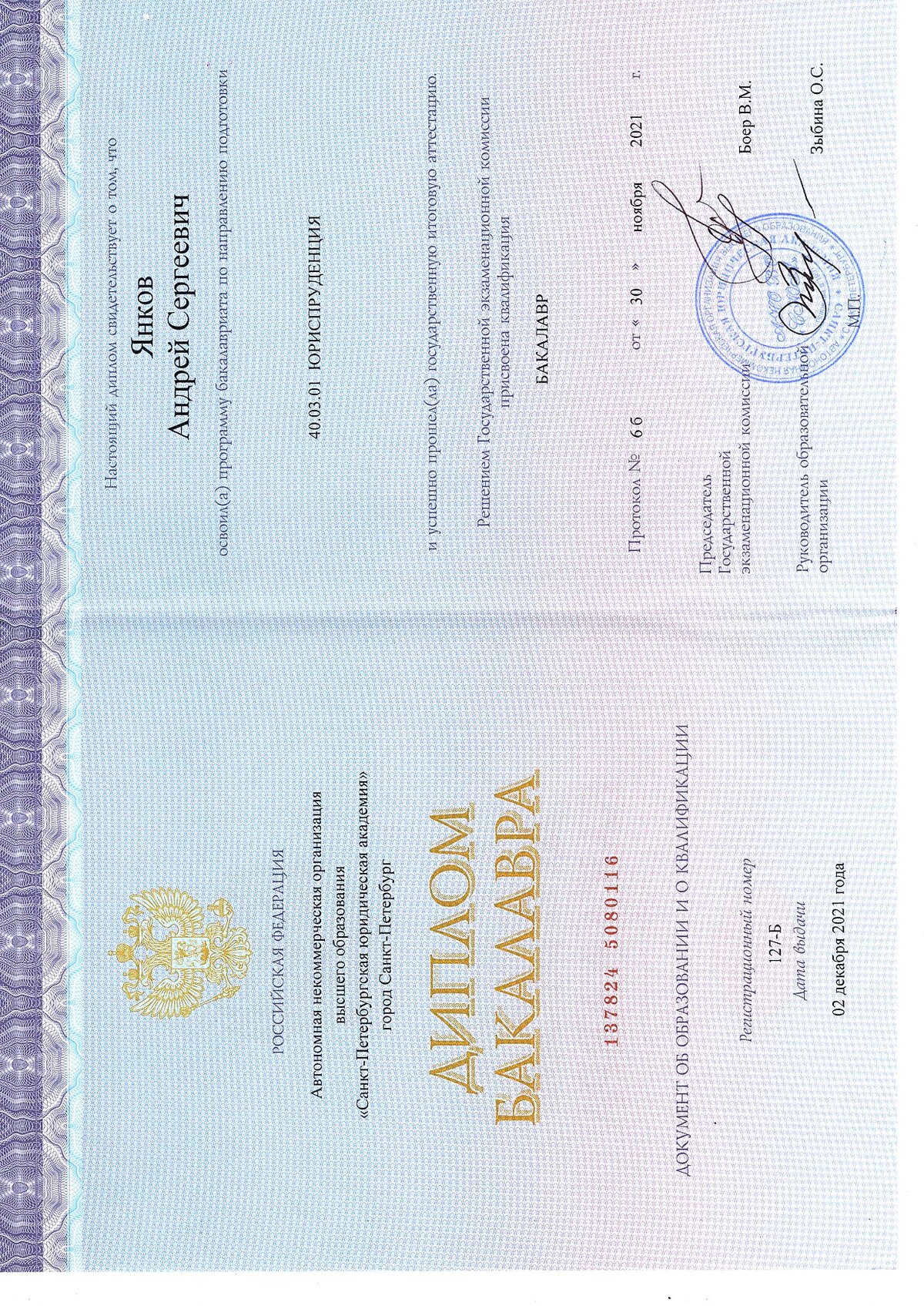 Диплом проверенСписок судебных дел в карточке юриста может быть не полным и зависит от того, указан ли юрист Янков Андрей Сергеевич в деле или нет