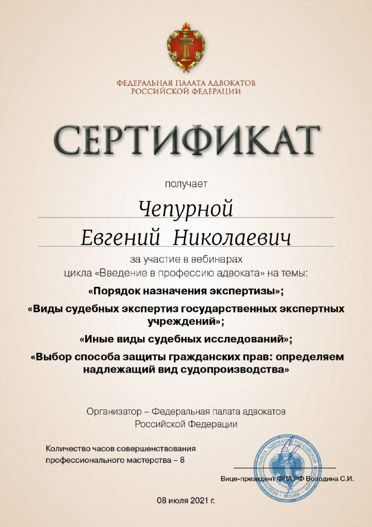 Адвокат по уголовным, гражданским, арбитражным делам, по делам об административных правонарушениях, адвокат общей специализации. Возможно дистанционное оказание услуг.