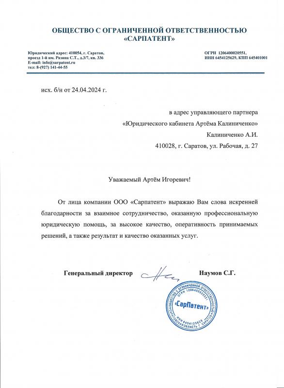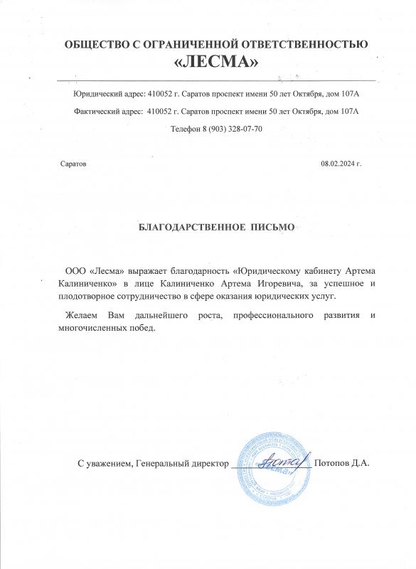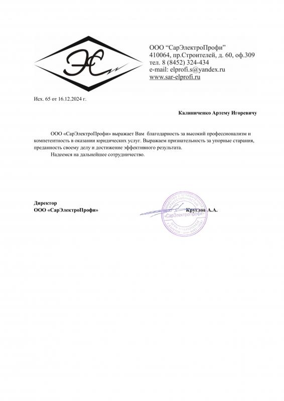 Предлагаю квалифицированные юридические услуги: представительство в судах общей юрисдикции и арбитражных судах, составление исков, жалоб, договоров, претензий и других документов. Осуществляю юридическое сопровождение бизнеса, включая абонентское обслуживание юридических лиц. Помогаю с оформлением сделок с недвижимостью, в том числе с ипотекой, и провожу правовую экспертизу документов. Представляю интересы организаций и частных лиц в Арбитражном суде Саратовской области, Двенадцатом арбитражном апелляционном суде, Первом кассационном суде общей юрисдикции, а также в других судах города Саратова и Саратовской области. Помощь участникам СВО. Для связи оставляйте заявку по электронной почте, в Telegram или WhatsApp.