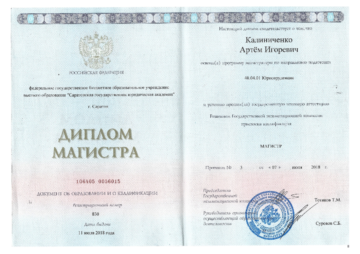 регистрационный номер 64/2021 в реестре адвокатов Саратовской области. Большой опыт практической деятельности, высокий уровень профессиональной квалификации и индивидуальный подход к каждому конкретному делу. Работа на результат. Критический анализ ситуации. Без пустых слов и обещаний. Положительный опыт участия в процессах на территории различных субъектов Российской Федерации.