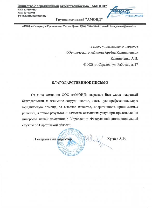 Окажу юридическую помощь по представлению Вашего предприятия в Арбитражном суде Саратовской области, Двенадцатом арбитражном апелляционном суде, Первом кассационном суде общей юрисдикции, Арбитражном суде города Москвы.