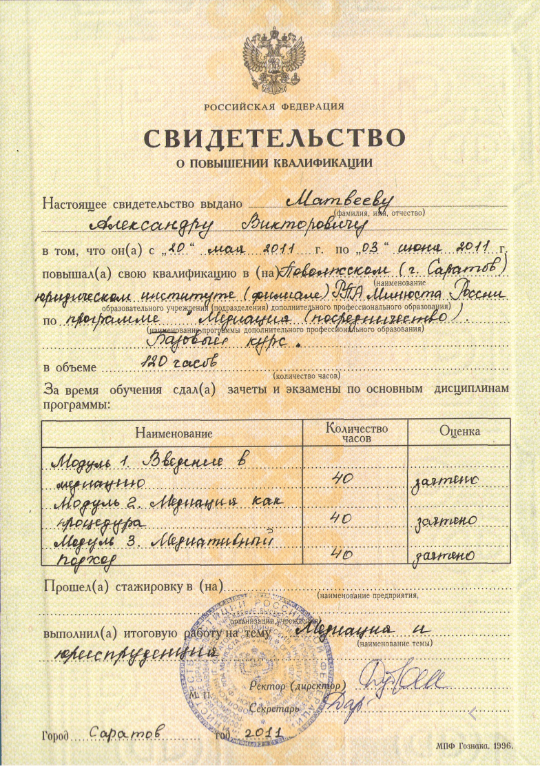 Список судебных дел в карточке юриста может быть не полным и зависит от того, указан ли юрист Матвеев Александр Викторович в деле или нет
