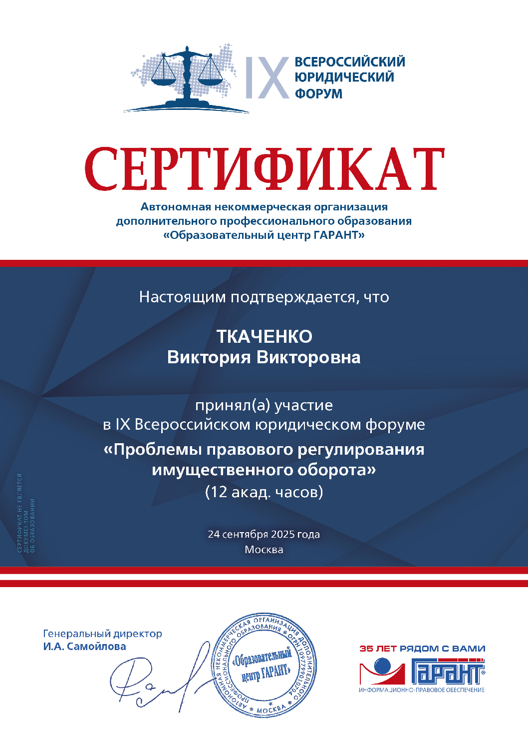 Выражаю огромную благодарность адвокату Ткаченко Виктории Викторовне. Замечательный адвокат, прекрасно владеет своим знаниями и опытом.... Читать далее