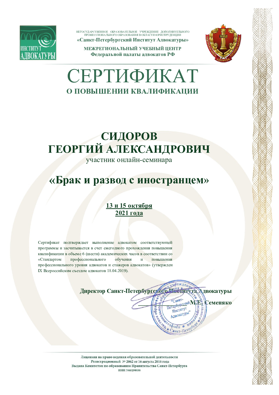 Антон Владимирович Ильин – специалист в области уголовного процесса и криминалистики, имеющий степени бакалавра и магистра юридических наук. В 2011 году он окончил Санкт-Петербургский государственный университет и начал свою карьеру в силовых структурах и ведомствах Санкт-Петербурга. С 2014 года Антон Владимирович работает адвокатом по гражданским и уголовным делам, являясь членом Адвокатской палаты Севастополя (реестровый номер 91/445). С этого же года он ведет самостоятельную адвокатскую практику. После многих лет успешной работы в Санкт-Петербурге, Антон Владимирович решил переехать в Севастополь. Его основная цель – предоставлять высококачественные юридические услуги и поддерживать безупречную репутацию, создавая комфортную и профессиональную атмосферу для своих клиентов.