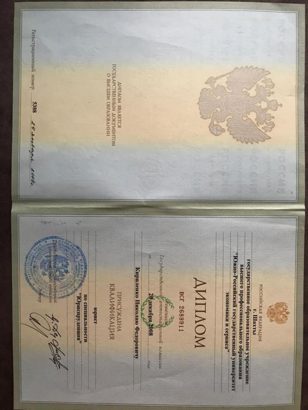 У меня высшее образование по специальности “юриспруденция”, диплом получен в ЮРГУЭС.