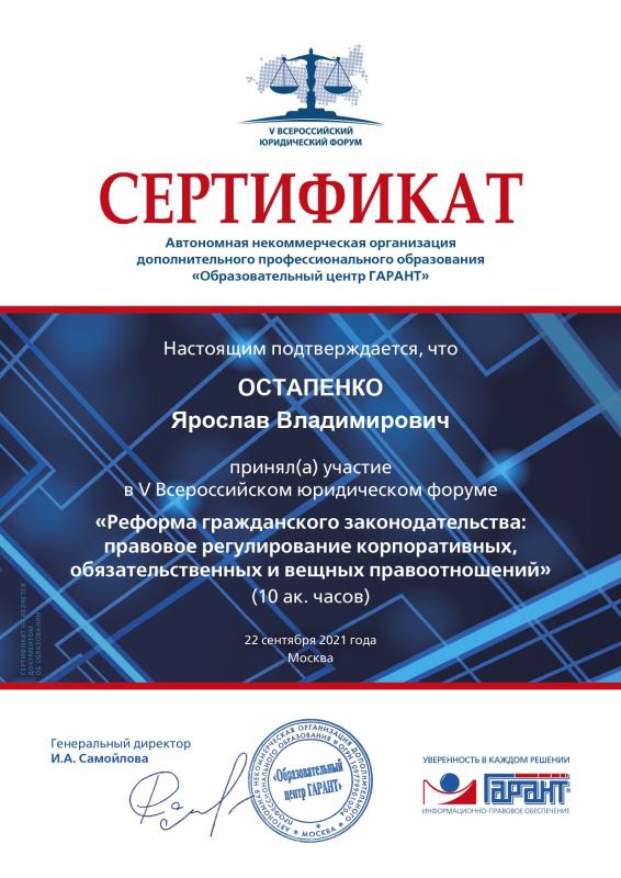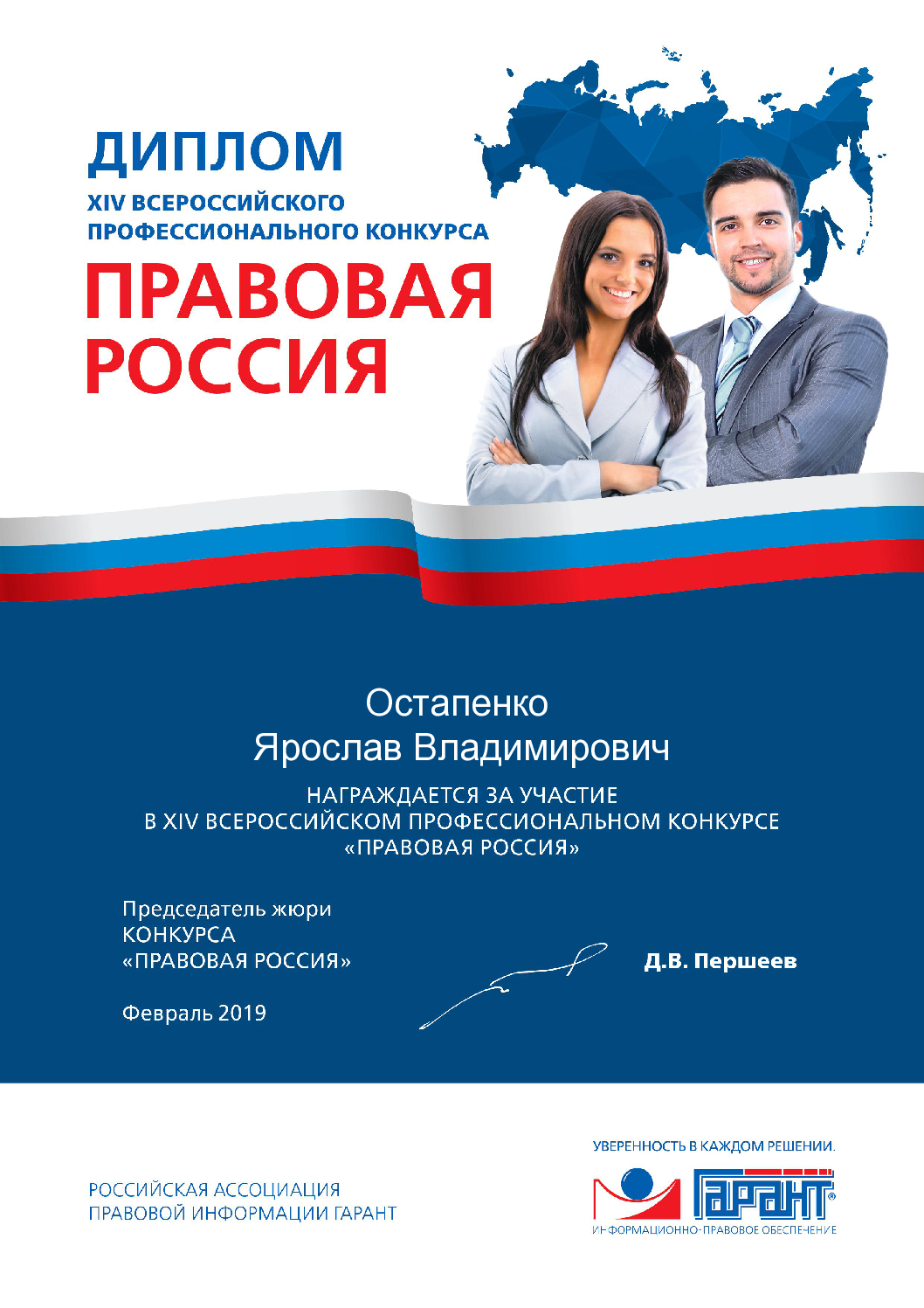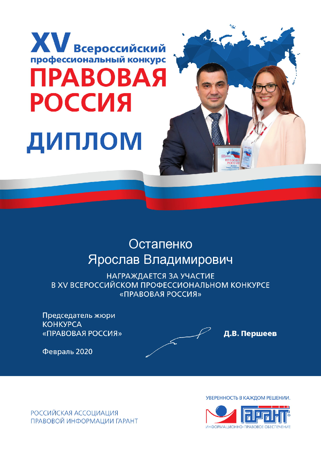 Приветствую! Я являюсь членом Ассоциации Юристов России и Союза Адвокатов России, а также возглавляю юридический кабинет «Остапенко и партнеры». Я часто даю экспертные комментарии в СМИ, что подтверждает мою компетентность. Вместе с командой высококвалифицированных специалистов мы готовы помочь вам решить юридические вопросы любой сложности. Ваше право на справедливость неоспоримо, и мы здесь, чтобы его защитить. Анализ ситуации по телефону предоставляется бесплатно.