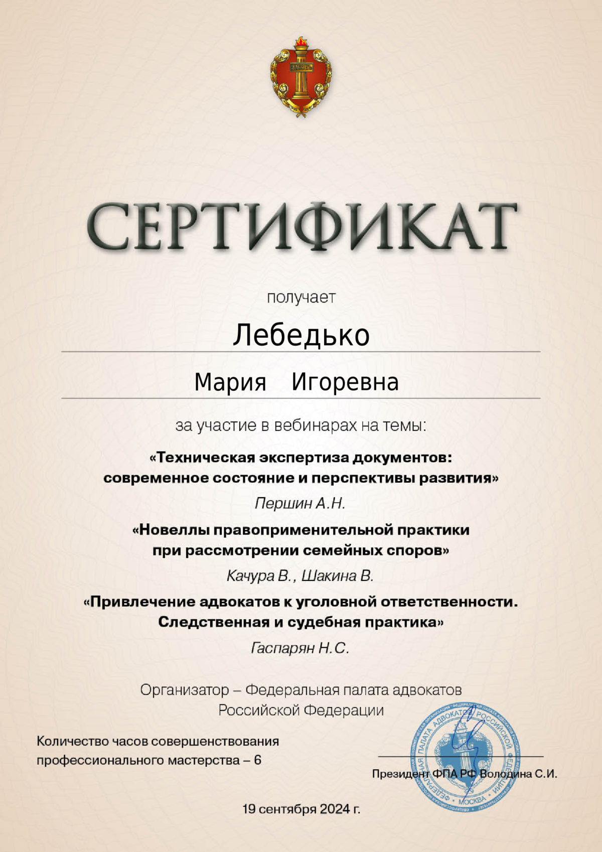 Являюсь адвокатом адвокатской палаты Смоленской области с 2016 года. Опыт работы в Смоленском областном суде и Арбитражном суде Смоленской области в должности помощника судьи. Готова оказать квалификацию юридическую помощь. Гарантирую профессиональный и индивидуальный подход к Вам и вашей проблеме.