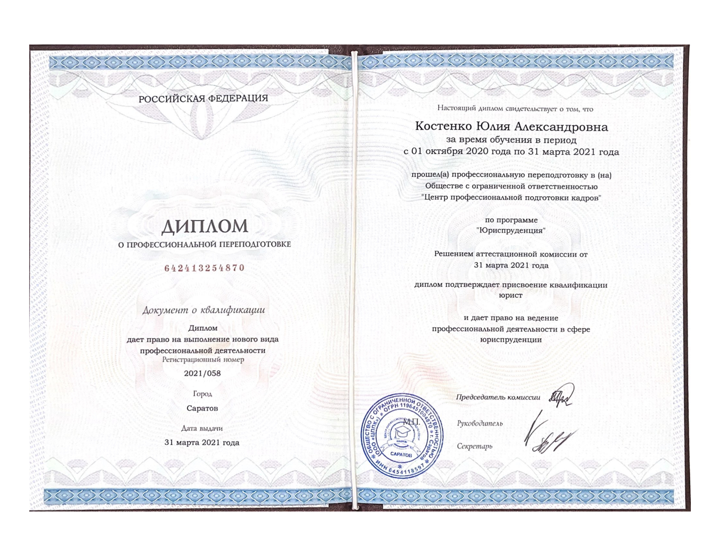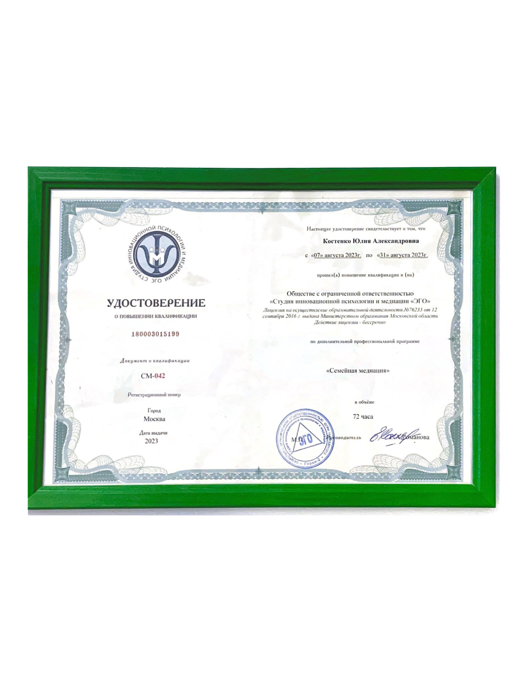 Я — практикующий юрист с высшим юридическим образованием и 21-летним опытом работы в государственных учреждениях. Специализируюсь на семейных спорах и арбитраже. Имею дополнительное профессиональное образование медиатора, что позволяет эффективно разрешать конфликтные ситуации.