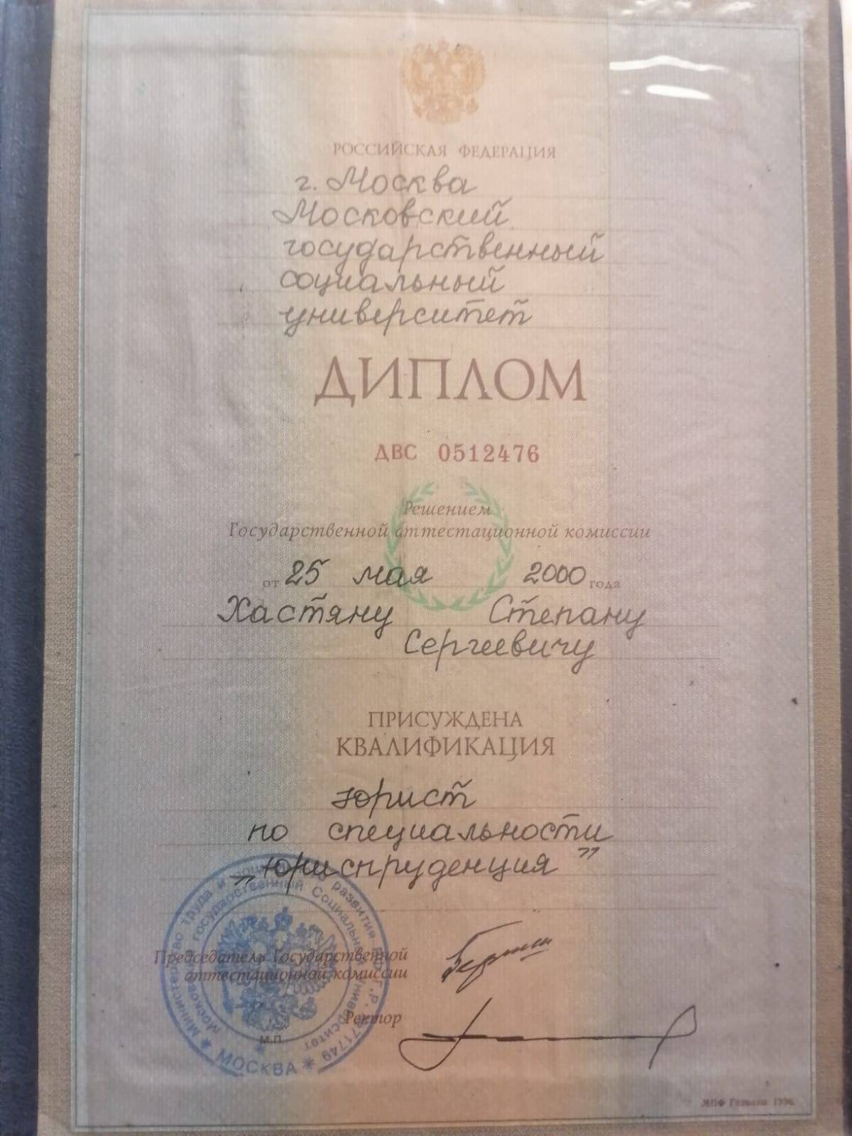 Воспользовался услугами Хастяна С. С., очень грамотный специалист, выполнил свою работу на отлично, рекомендую!