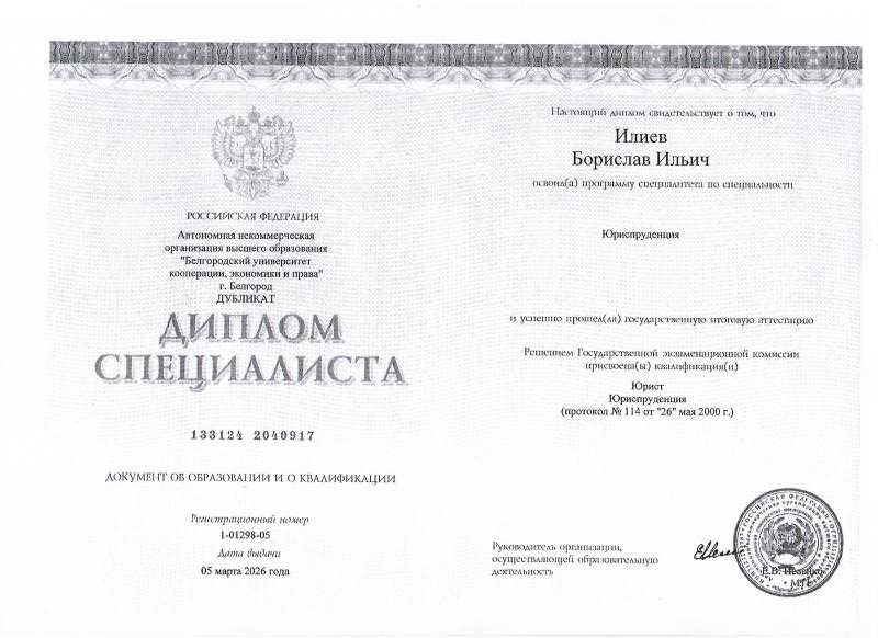 Благодарю Борислава Илиева за выигранный суд по разделу имущества! Работа была выполнена качественно и быстро! Всем доволен буду рекоме... Читать далее