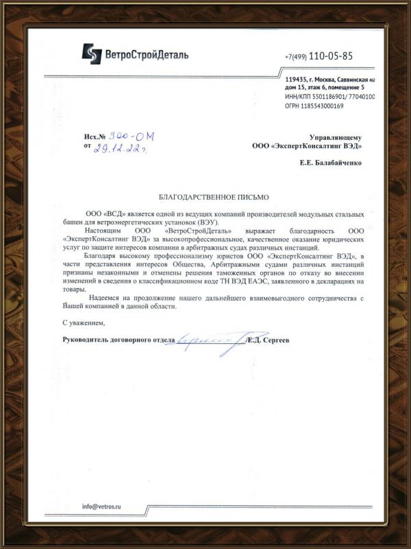 В нашей компании работают специалисты, имеющие многолетний опыт работы в отделах товарной номенклатуры в таможенных органах, а также юристы, имеющие опыт участия в судебных процессах. Наша компания является участником открытого Соглашения о сотрудничестве между Арбитражным судом Ростовской области и экспертными учреждениями. По итогам 2023 года при участии специалистов ГК Эксперт Групп 96,1% решений приняты в пользу участников ВЭД судами различных инстанций и по результатам выигранных дел участникам ВЭД возвращены свыше 200 млн рублей. В области таможенных споров наша компания специализируется на оспаривании решений таможенных органов, связанных с классификацией товаров в соответствии с ТН ВЭД ЕАЭС, обжаловании отказов по внесению изменений в сведения, заявленные в ДТ, на возврате излишне уплаченных таможенных платежей и иных вопросах таможенного права.