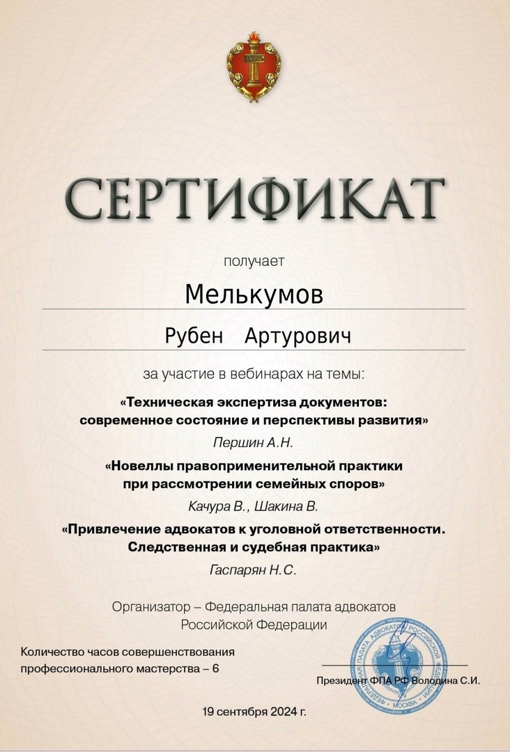 Список судебных дел в карточке адвоката может быть не полным и зависит от того, указан ли адвокат Мелькумов Рубен Артурович в деле или нет