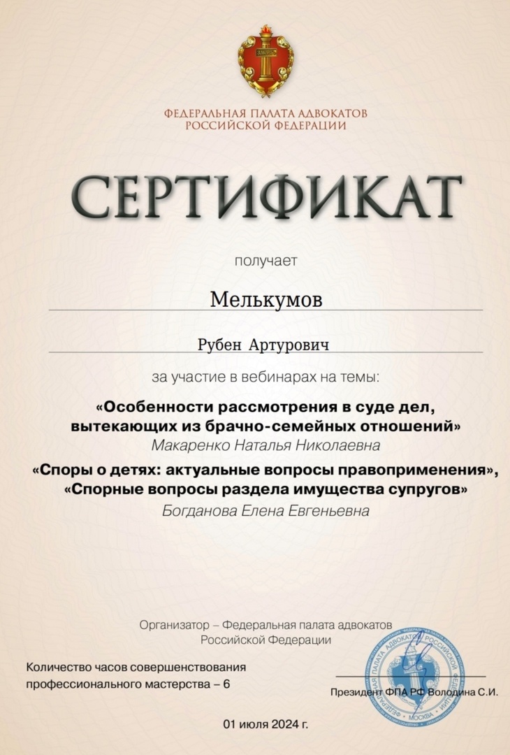 Хочу выразить огромную благодарность адвокату Мелькумову Р.А за профессионализм и помощь в моем деле. Благодаря его грамотному подходу ... Читать далее