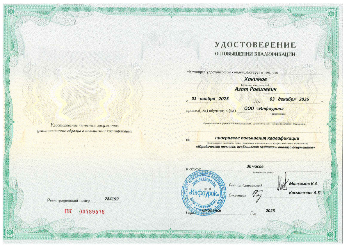 Специализация: Помощь в решении проблем в различных отраслях права. Основные услуги: