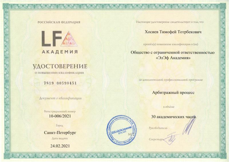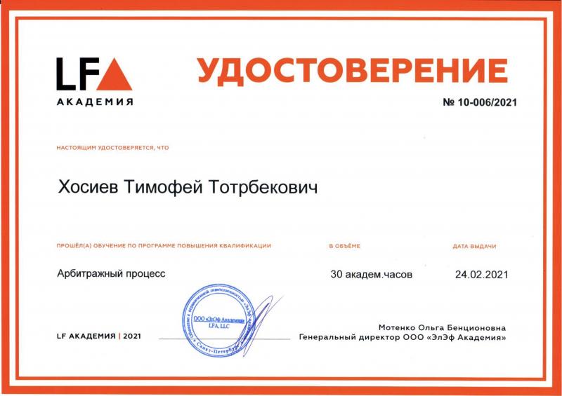 Меня зовут Тимофей Хосиев, мне 38 лет, и я занимаюсь частной юридической практикой. Живу и работаю в Стерлитамаке, а также оказываю услуги по всей Республике Башкортостан. Моя профессиональная деятельность сосредоточена в области гражданского права. Основные специализации включают страховые споры по ОСАГО и КАСКО, административные правонарушения и защиту прав потребителей.