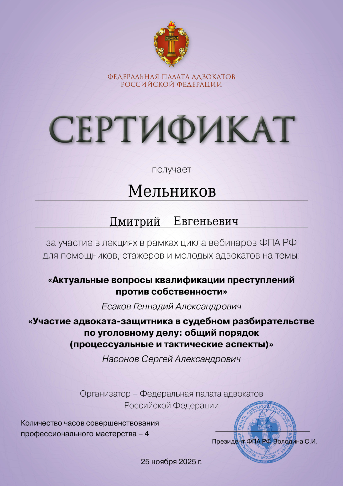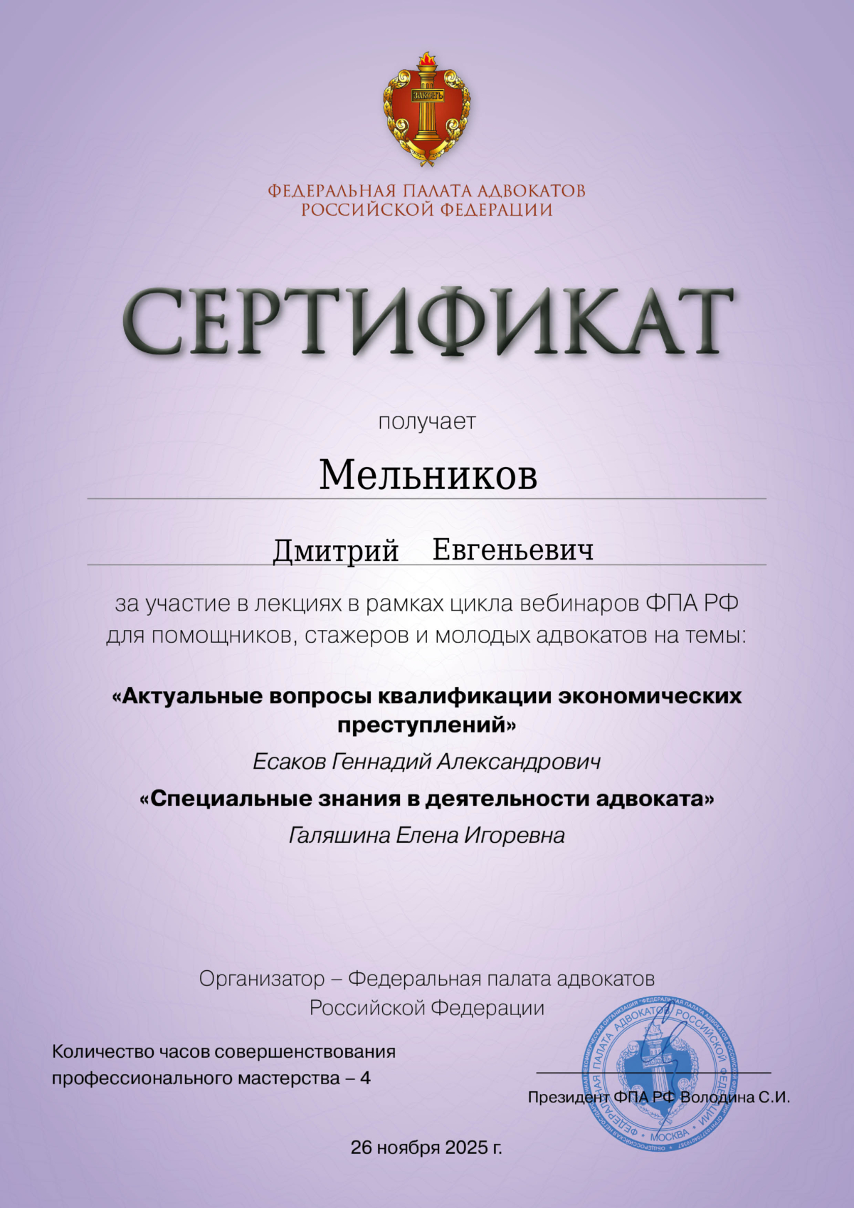 ✅ Специализация: гражданское, уголовное, арбитражное, административное право, налоговые споры.