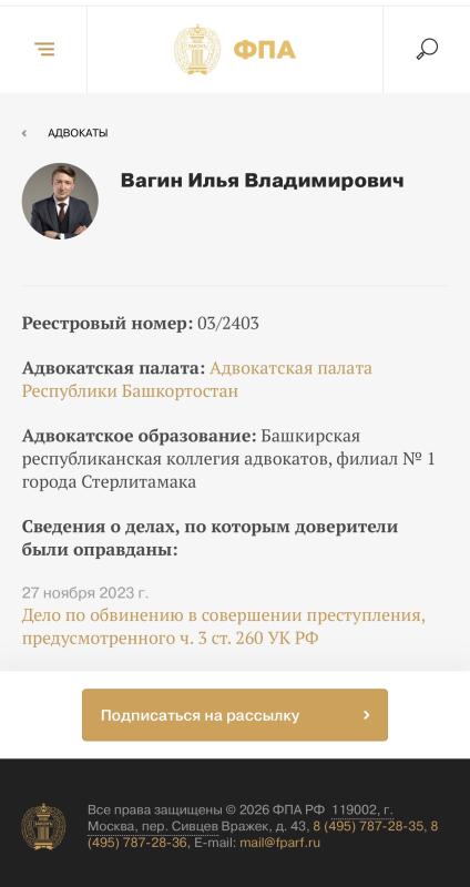 Список судебных дел в карточке адвоката может быть не полным и зависит от того, указан ли адвокат Вагин Илья Владимирович в деле или нет