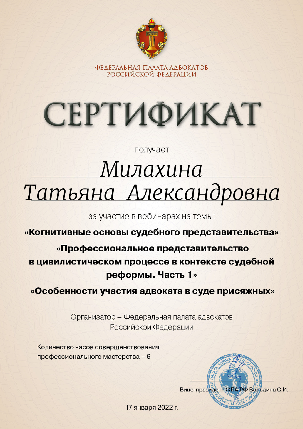 Обращаясь ко мне, вы можете рассчитывать на строгую конфиденциальность, индивидуальный подход и оптимальное решение вашей проблемы. Я тщательно изучу ваш вопрос, выясню все обстоятельства и наличие доказательств, после чего представлю свою позицию относительно перспективы спора и путей его разрешения в соответствии с законом и правоприменительной практикой. Я не берусь за дела, которые считаю бесперспективными. Каждое дело уникально, даже если оно кажется похожим на другие. Объем услуг и размер вознаграждения указываются в договоре. Мой профессиональный путь начался со студенчества, когда я работала помощником адвоката, а затем набиралась опыта в качестве помощника судьи районного суда. Я прикладываю все усилия, чтобы выиграть судебный спор и добиться выгодного для клиента решения.