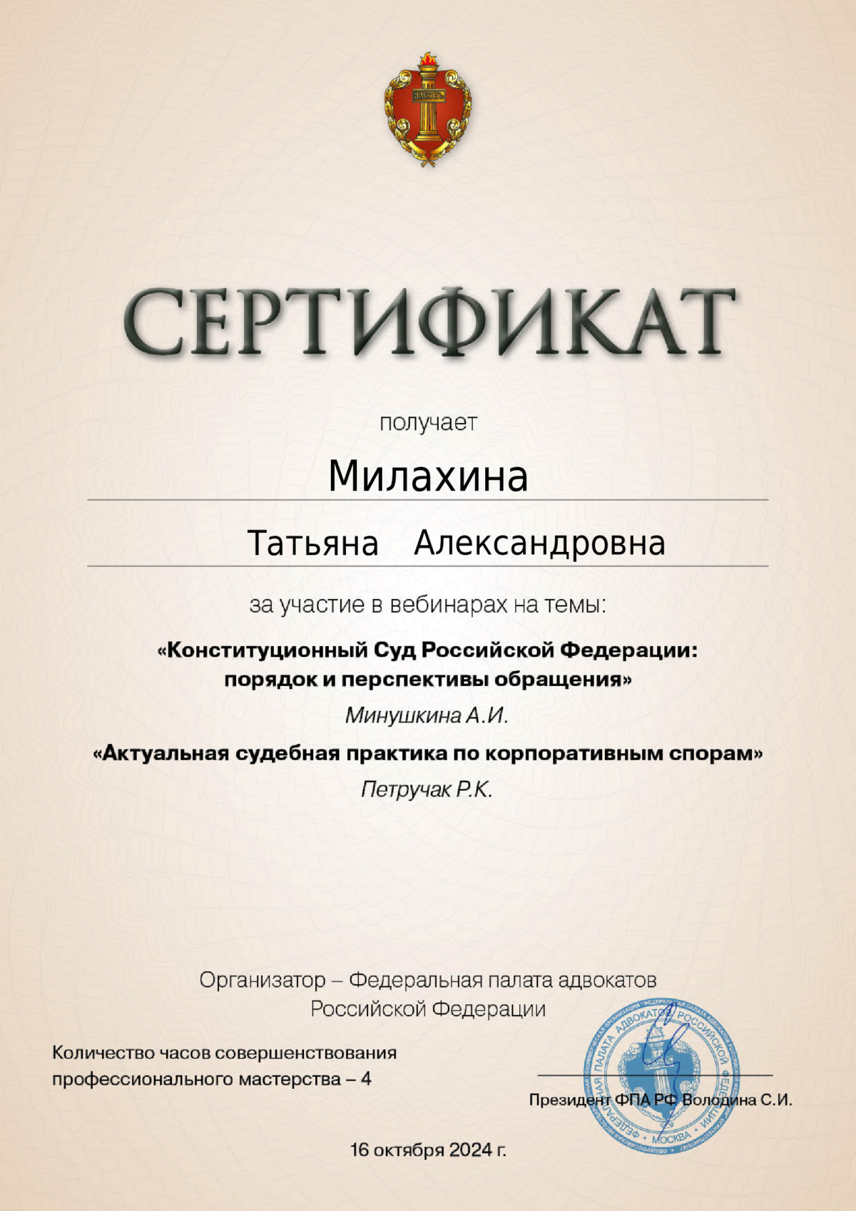 Добрый день! Меня зовут Ирина Игоревна Поминова. Опыт работы юристом более 20 лет. Все наши проекты доведены до успеха! Предлагаю бесплатные консультации по телефону, в сообщениях и лично в офисе. Возможно оказание услуг дистанционно. Личные встречи проводятся по предварительной договорённости. Описывайте вашу проблему, и я найду решение, грамотно составлю необходимые документы. Обращаясь ко мне за юридической помощью, Вы получаете высокопрофессиональную качественную защиту Ваших прав и интересов, четкое решение проблем в установленные сроки, индивидуальный подход к каждому. Реальные консультации, работа на результат. Фиксированная цена в соглашении, без скрытых доплат. Свяжитесь со мной прямо сейчас для получения квалифицированной юридической помощи и решения вашей проблемы! Мы уверены, придя к нам однажды, вы останетесь с нами навсегда!