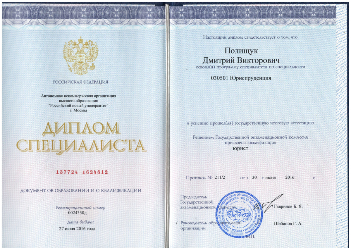 Список судебных дел в карточке адвоката может быть не полным и зависит от того, указан ли адвокат Полищук Дмитрий Викторович в деле или нет