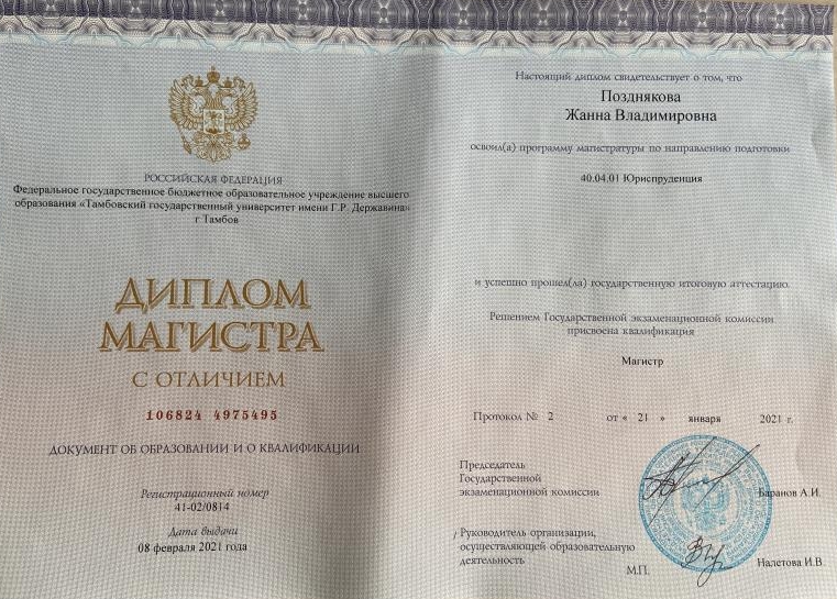 Тамбовский государственный университет имени Г.Р. Державина — Гражданский процесс, арбитражный процесс — Тамбов Магистр