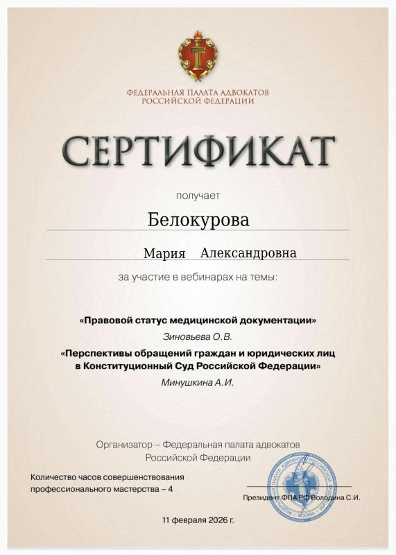 Хочу сказать спасибо адвокату Белокурову Мария Александровна. Мария прекрасный специалист. Очень грамотная и позитивная. На любые вопро... Читать далее