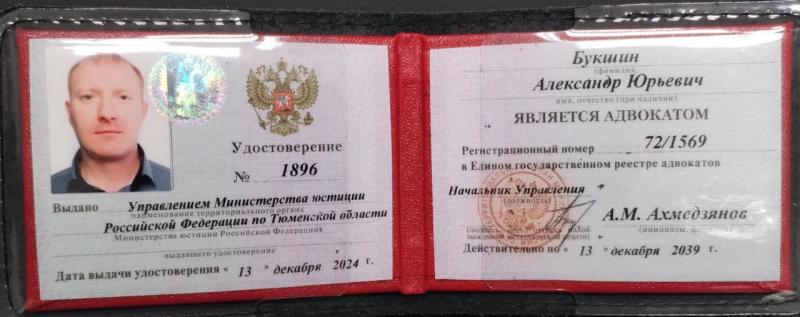 Регистрационный номер в реестре адвокатов Тюменской области: 72/1569