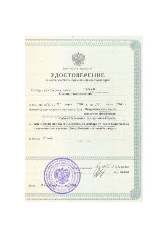 Профессиональный стаж более 6 лет в сфере работы в органах гос.власти и коммерческой структуры (осуществление судебно-исковой, претензионной работы, договорной работы, представительство в судах различных инстанций (ГПК,КАС,АПК),работа с юридическими документами).