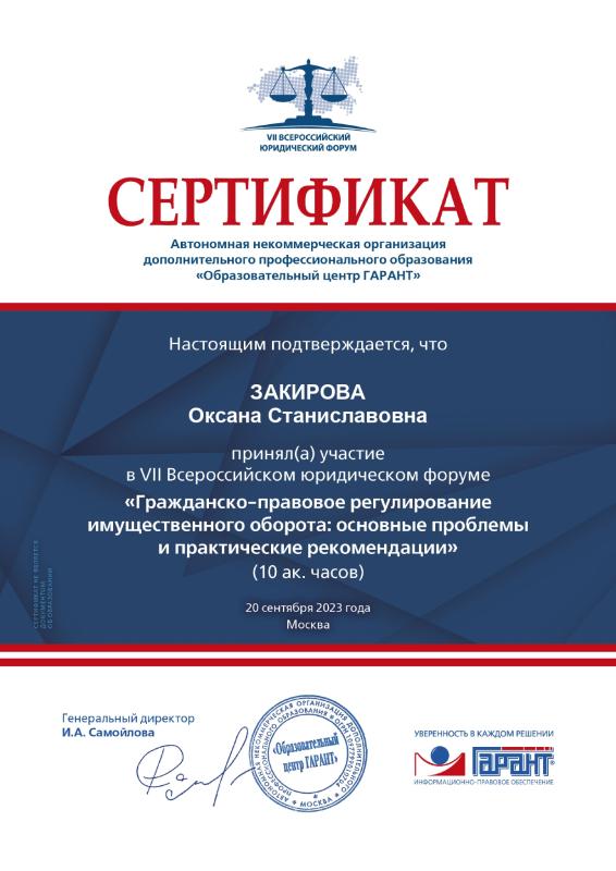 У меня высшее юридическое образование и более 18 лет практического опыта в сфере оказания юридических услуг.