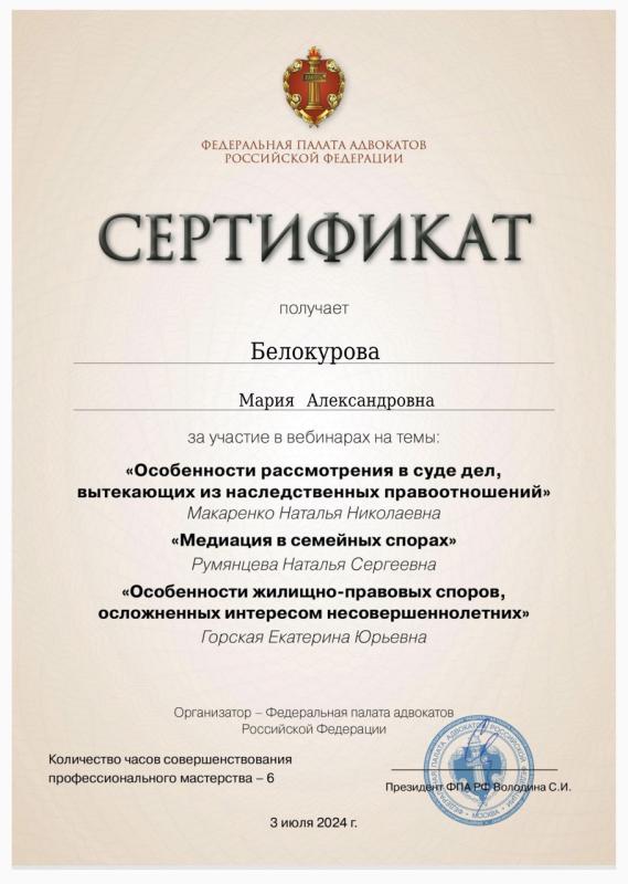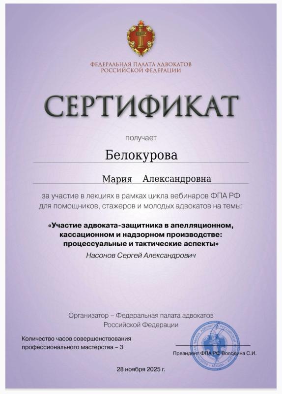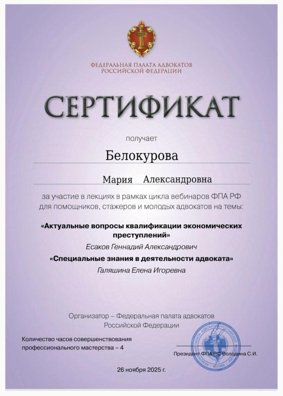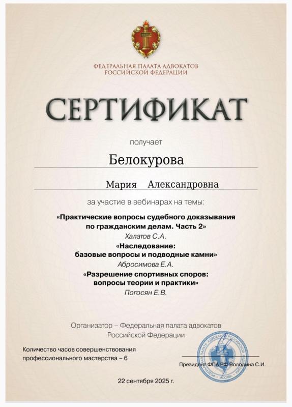 Оказываю помощь в решении вопросов правового характера гражданам и организациям.То, что для Вас неразрешимая проблема – для меня повседневная ситуация, работа над которой позволяет добиться положительных результатов. Готова обеспечить для Вас доступность, оперативность, конфиденциальность. Нацеленность на результат - ключевое что имеет значение, поэтому Вы всегда будите знать о ходе Вашего дела и дальнейших мероприятиях, необходимых для достижения ожидаемого результата. Если желаемый результат невозможен, труднодостижим или непредсказуем, Вы заранее будете знать об этом. Своевременная помощь адвоката очень важна для положительного результата, поскольку она увеличивает шансы решения вопроса в вашу пользу и позволяет сэкономить Ваше время и средства.