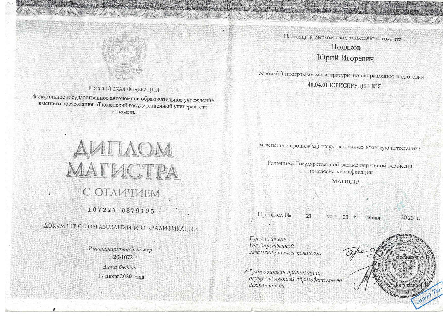 Окончил бакалавриат и магистратуру ТюмГУ по направлению «Юриспруденция».