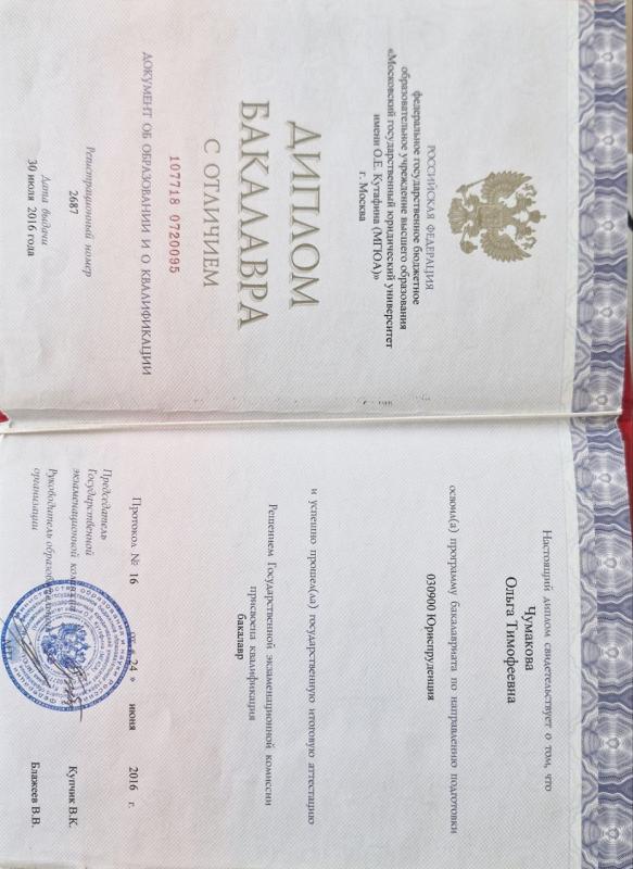 Мой Telegram канал https://t.me/advokat_oren Чумакова Ольга Тимофеевна адвокат РФ в г. Оренбург Оренбургская область, зарегистрирован в Минюсте №56/1285, стаж более 7 лет.