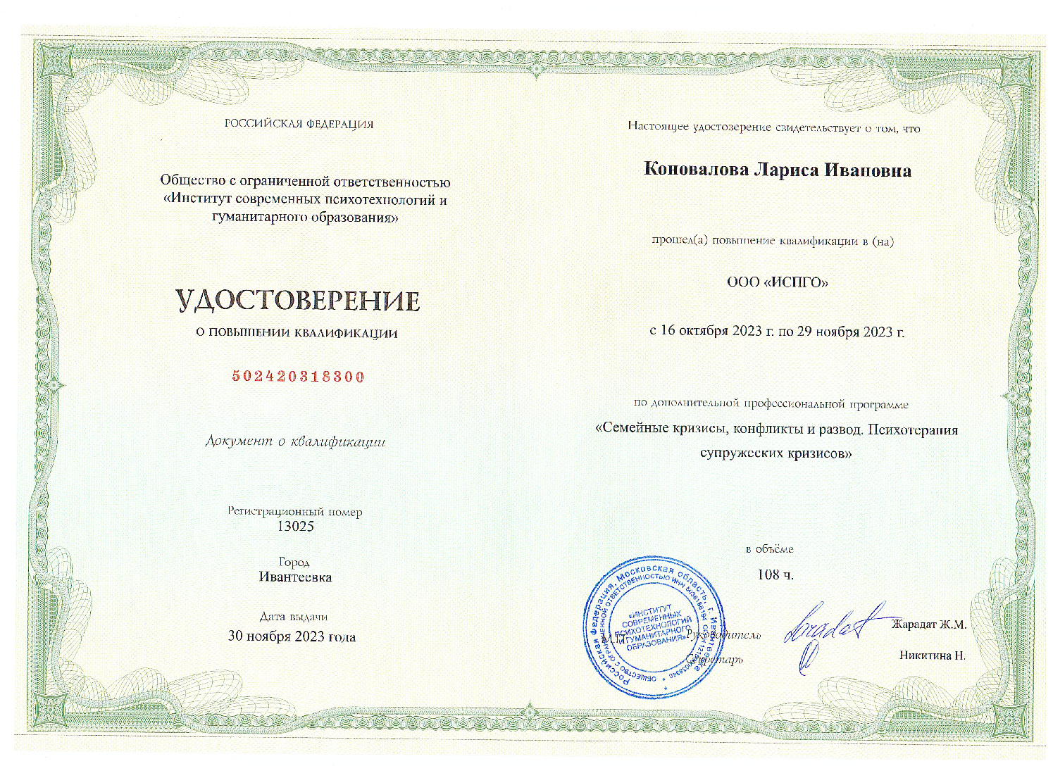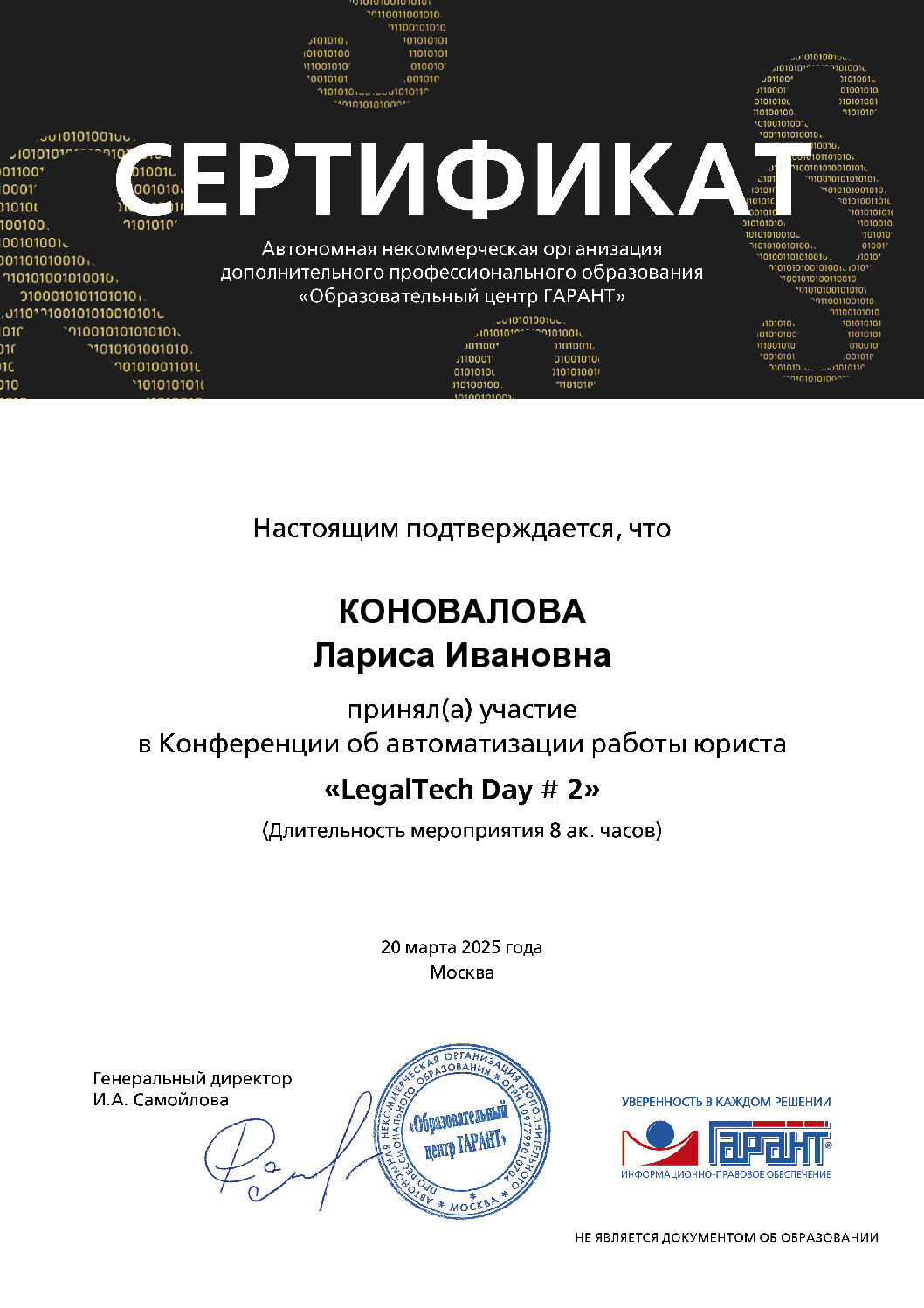 Дипломированный юрист с высшим образованием, специализируюсь на комплексном правовом сопровождении как физических, так и юридических лиц. Постоянно обновляю свои знания, следя за изменениями в законодательстве, чтобы предлагать клиентам актуальные и эффективные решения. Специализация охватывает различные области права: гражданское, трудовое, семейное, пенсионное, наследственное и административное. Оказываю юридическую помощь, представляя интересы клиентов в суде и других правоохранительных органах. Профессиональный подход основан на глубоком понимании правовых норм, что позволяет предоставлять квалифицированные и точные консультации по различным правовым вопросам. Обратившись ко мне, вы получите качественную и профессиональную юридическую помощь в решении ваших вопросов. Я всегда готова проконсультировать и предоставить подробные объяснения по вашим правам и обязанностям.