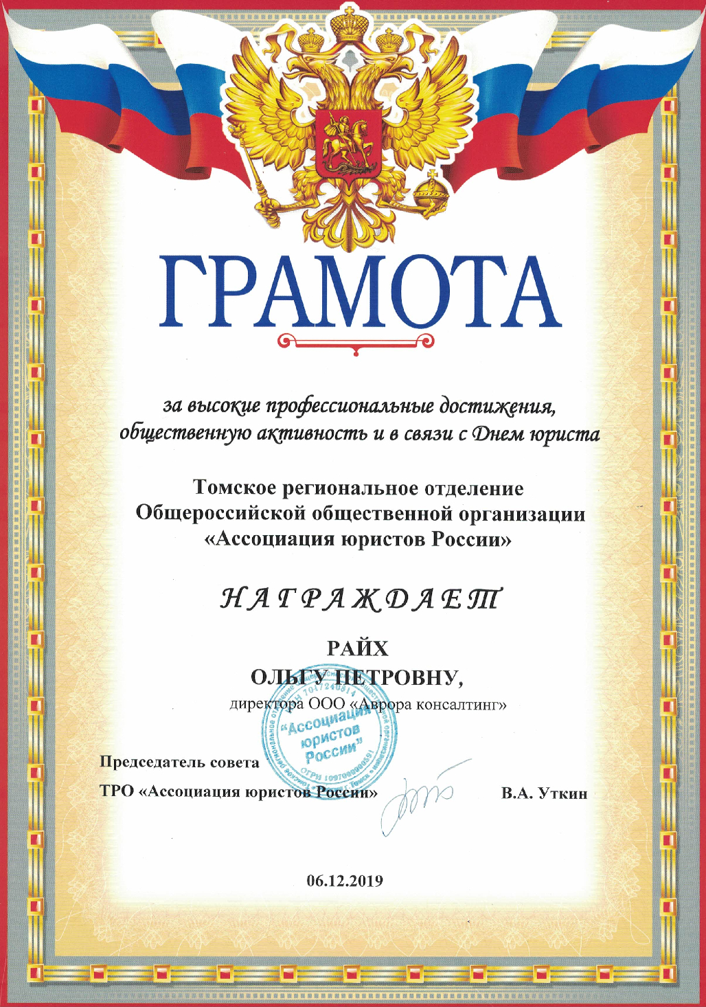 Дипломированный юрист с высшим образованием, специализируюсь на комплексном правовом сопровождении как физических, так и юридических лиц. Постоянно обновляю свои знания, следя за изменениями в законодательстве, чтобы предлагать клиентам актуальные и эффективные решения. Специализация охватывает различные области права: гражданское, трудовое, семейное, пенсионное, наследственное и административное. Оказываю юридическую помощь, представляя интересы клиентов в суде и других правоохранительных органах. Профессиональный подход основан на глубоком понимании правовых норм, что позволяет предоставлять квалифицированные и точные консультации по различным правовым вопросам. Обратившись ко мне, вы получите качественную и профессиональную юридическую помощь в решении ваших вопросов. Я всегда готова проконсультировать и предоставить подробные объяснения по вашим правам и обязанностям.